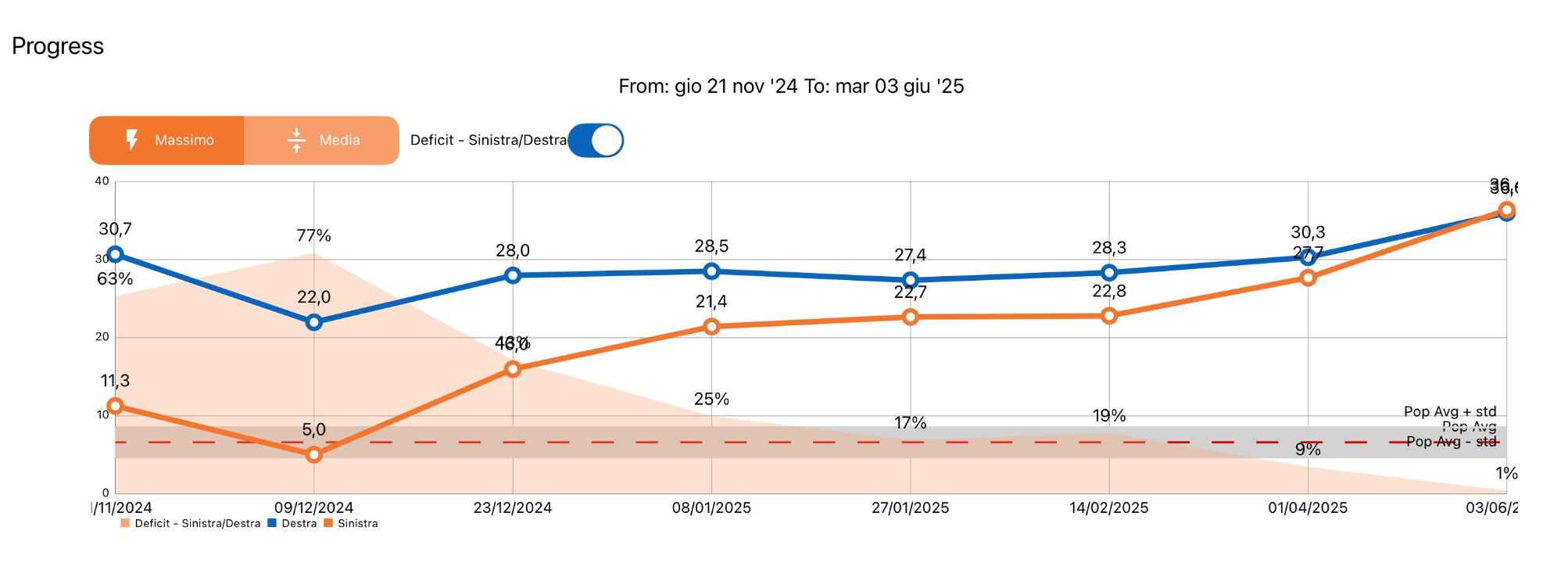 In the third phase (performance; 13-16 week) all the functions were empower, like increasing the strength of both legs by 10%, increasing running distance and speed (4-5 Km, speed >20km/h) and enhancing some cognitive tasks in a movement tailored contest. Finally the last phase (return to sport and play; week 17-24) focuses on controlled sport-specific skill movement and chaos sport-specific skills, achievement of 60′ continuous running and high speed running exercises ( > 25 km/h), and perform sport contest task like contact, suddenly change of directions, receiving and managing ball. At the end of the rehabilitation the athlete achieved a complete recovery of strength, running ability and excellent performance in all the outcome measures used.